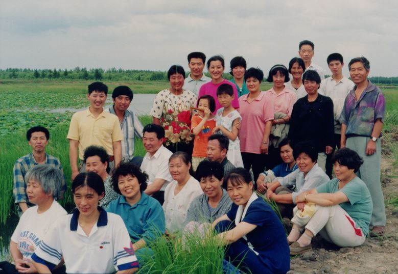 图9:去农场洪法的学员和当地的学员合影,笑容代表了他们的心(一九九七年拍摄)