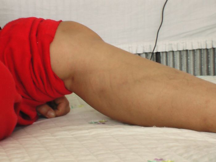 '图13:几天后还可见腿上有一道痕(二零零六年拍摄)'