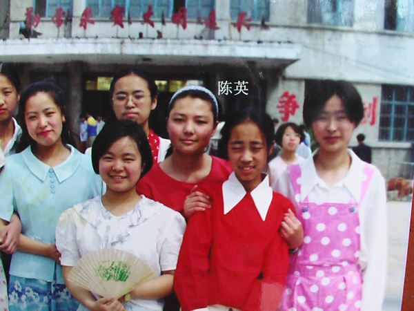 图17:陈英和佳木斯市树人中学的同学们(二排中立者)
