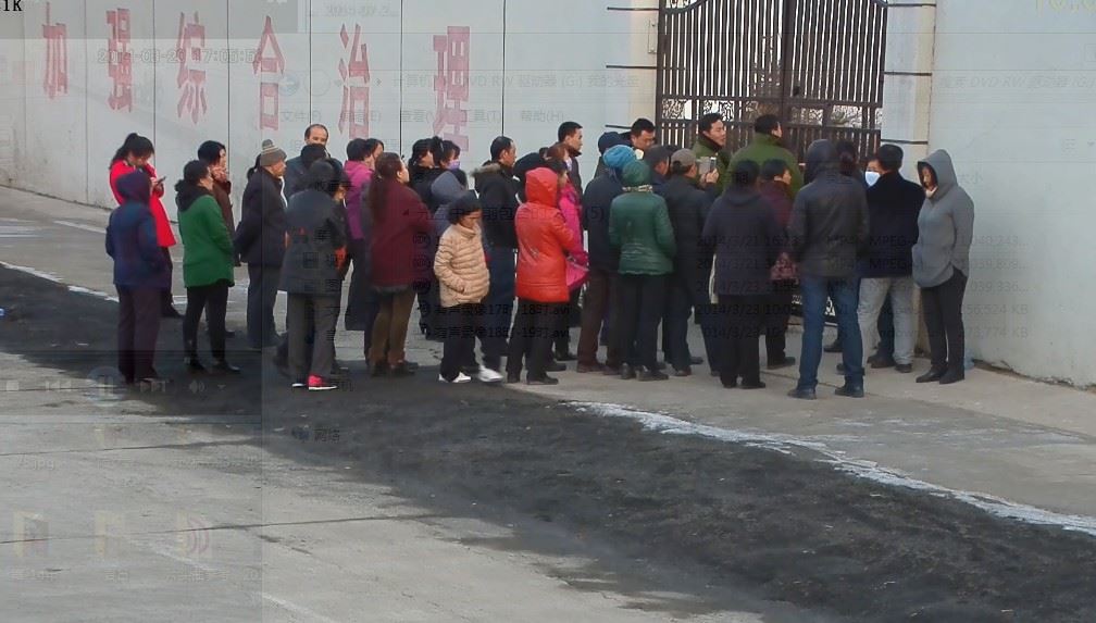 图21:律师、法轮功学员及家属在青龙山洗脑班门前喊话(二零一四年视频截图)