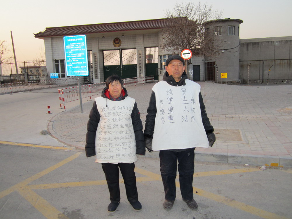 ![]() 为营救儿子周向阳,王绍平与丈夫周振才穿状衣鸣冤 |
