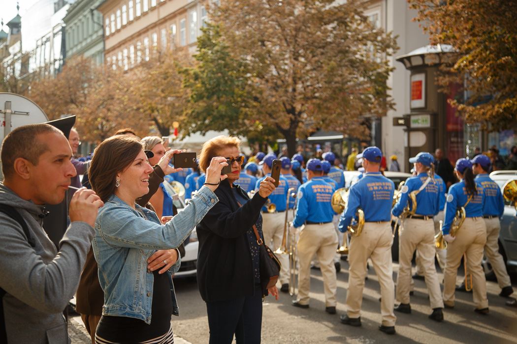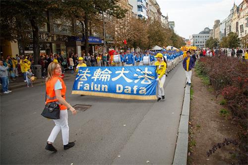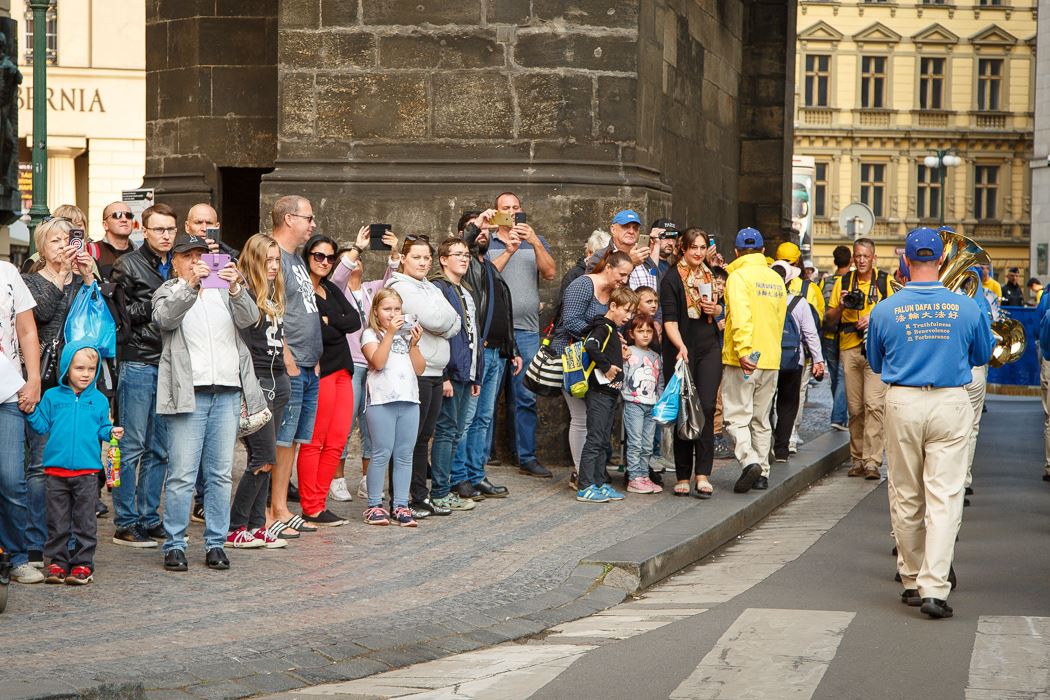 九月底,正是欧洲旅游的黄金季节,布拉格著名景点和老城区的大街小巷内,人群熙熙攘攘、游人如织,其中不乏中国游客。这么多身穿“法轮大法好”服装的法轮功学员出现在布拉格、尤其大部份是西方学员的面孔,给大陆游客带来很大的视野上的冲击,法轮功学员和平的风貌与中共谎言大相迳庭,这引起了不了解法轮功真相的大陆民众的思考。