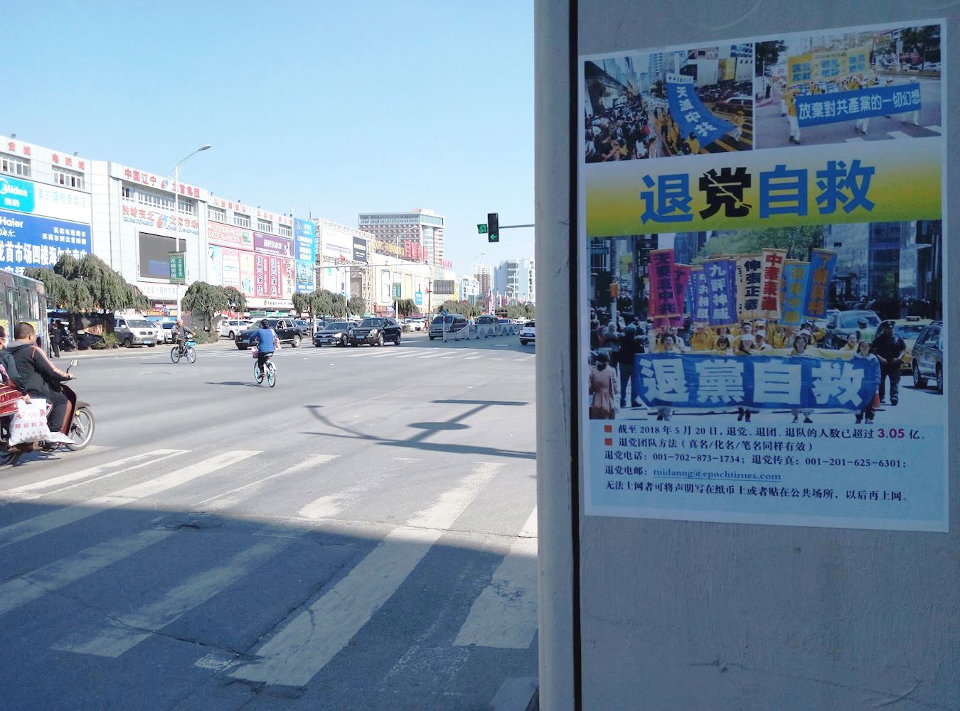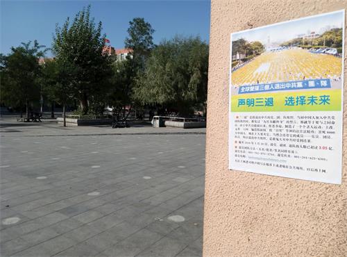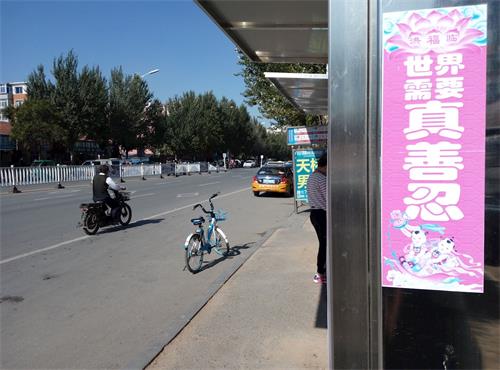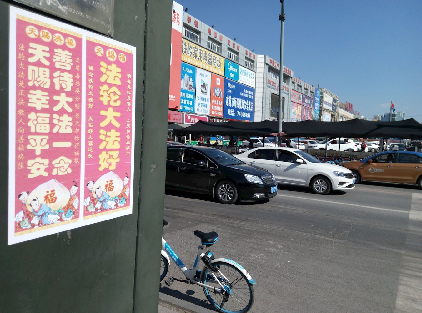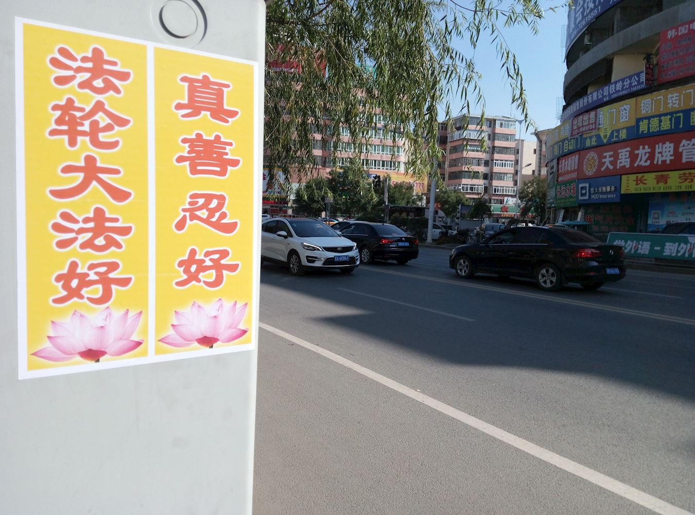 在铁岭,人们上街就能有机会遇到大法弟子告诉他们中共迫害大法修炼人的真相,抬头呢就看到“法轮大法好”、“三退保平安”等等的真相粘贴。