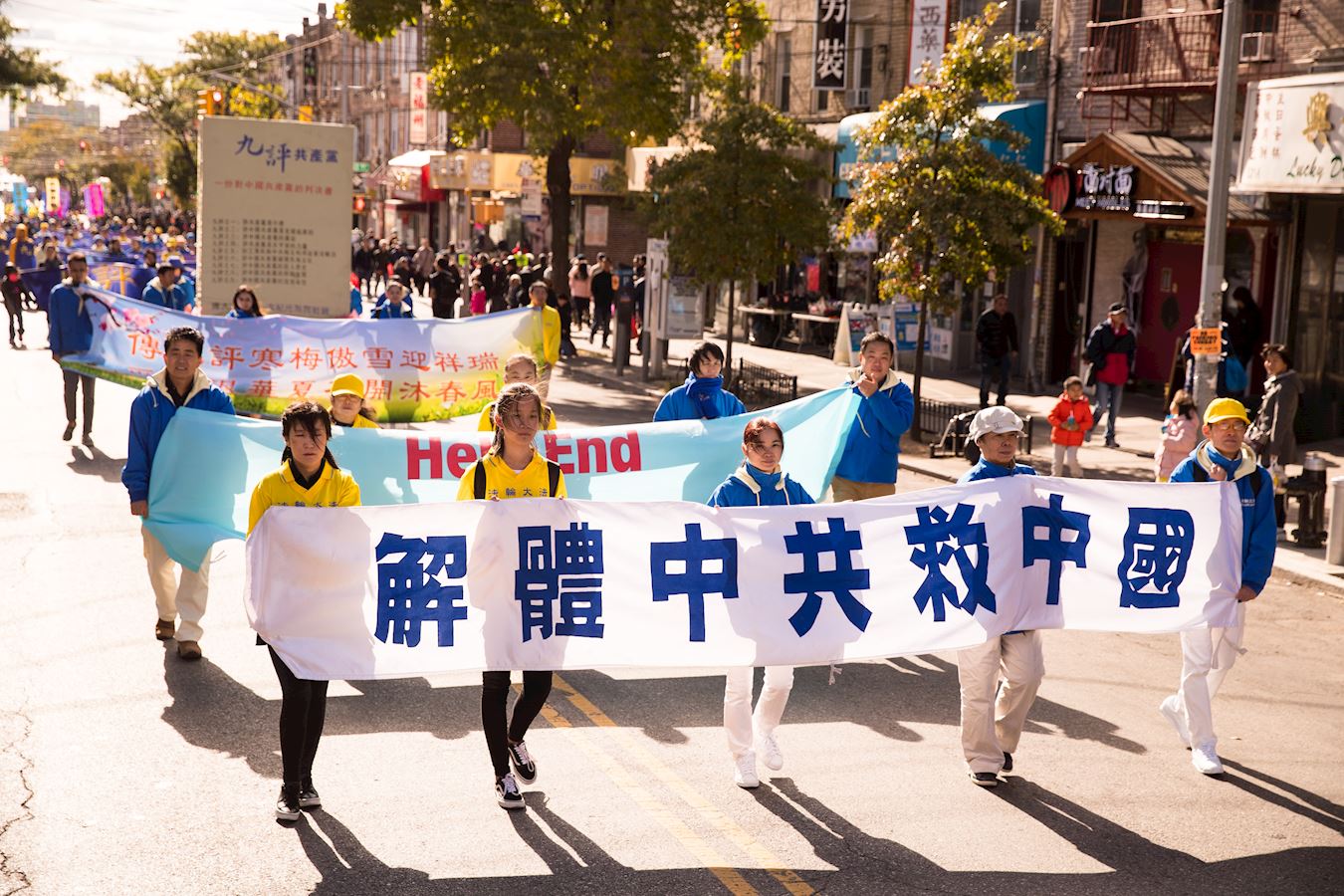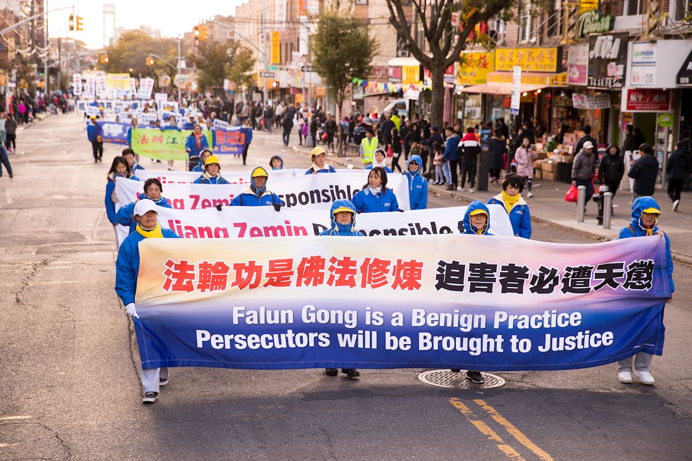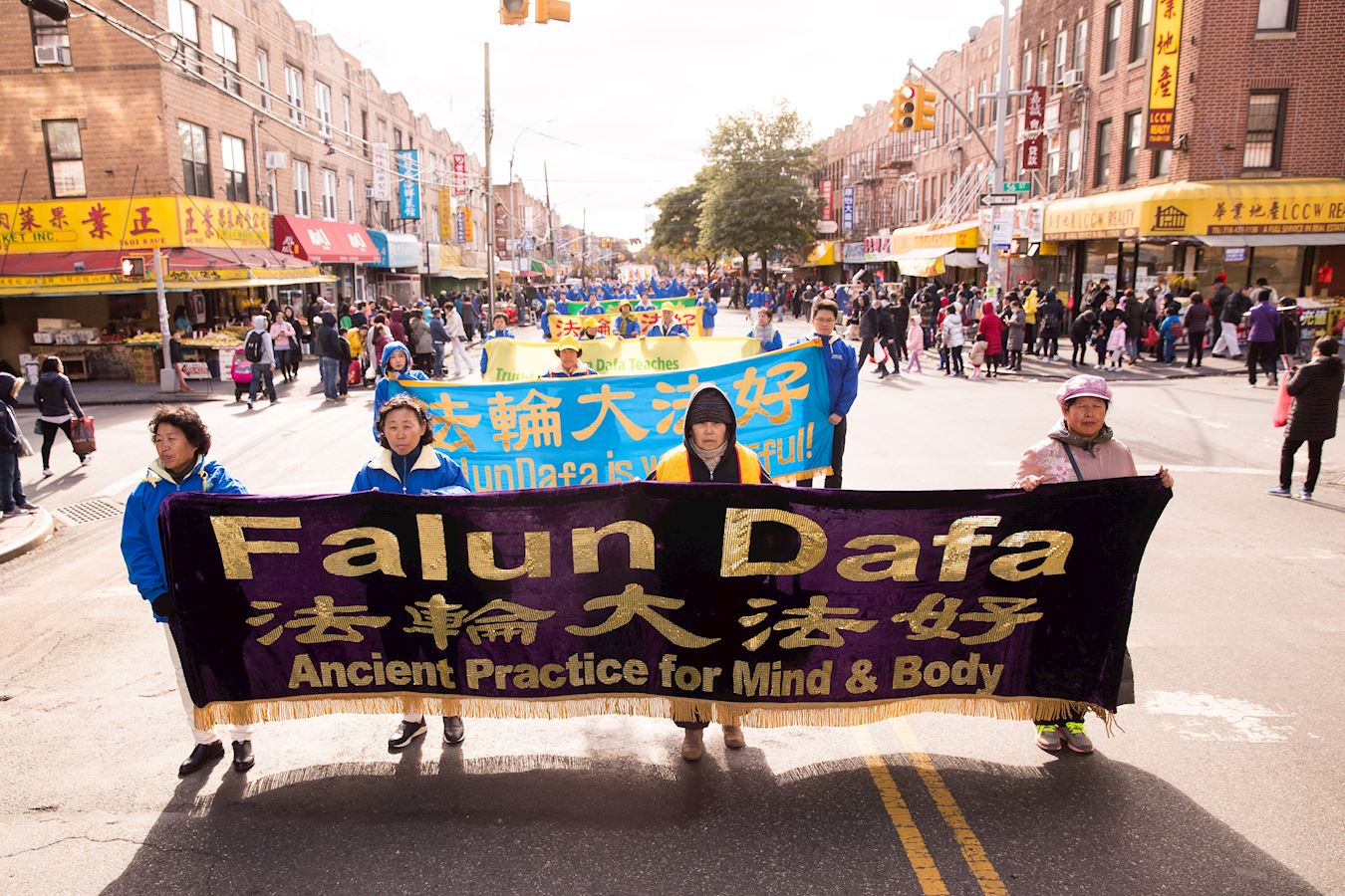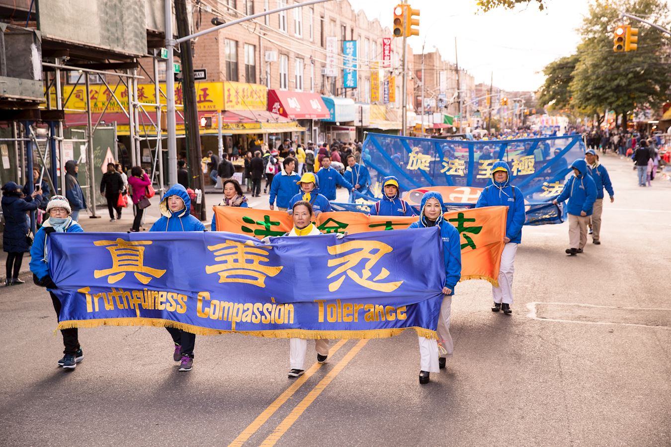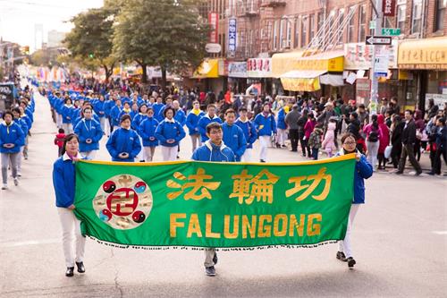 '图1~18:法轮功学员在纽约第三大华人社区布碌仑第八大道举行盛大游行'