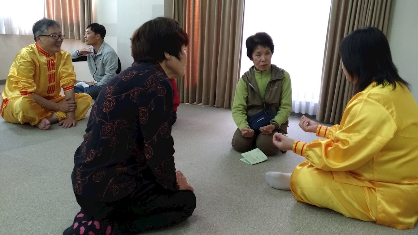 热诚的祇园西公民馆馆长特意在馆内放送、推荐体验法轮功,当时有很多人前来体验学习法轮功功法。炼功中很多人都感受到了很强的能量,身体感到发热。其中有两位八十岁的女士不停地擦汗,临走时还说:“炼功时身体真热呀!”并且,还有的人疲劳得到缓解,身体感到轻松。