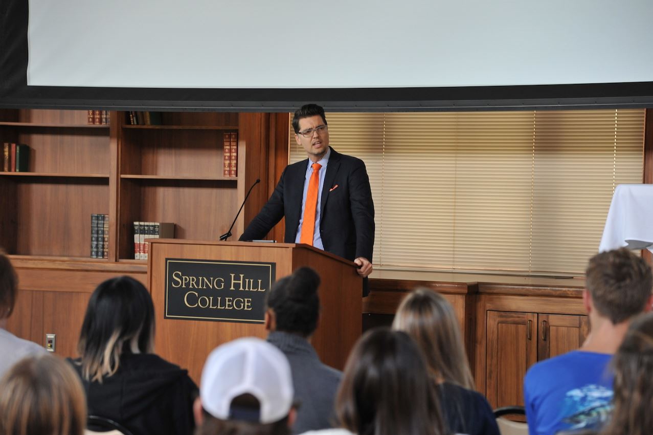 ![]() 图2:2018年10月26日,犹他大学和亨斯迈癌症研究所的肿瘤内科医生威尔顿·吉尔克里斯(Weldon Gilcrease)博士在伯尔尼(Byrne)纪念堂演讲 |