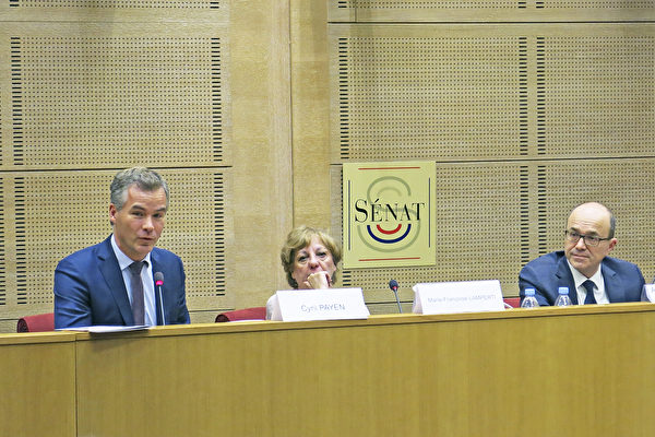 ![]() 图2:反强摘器官医生组织(DAFOH)科学顾问、神经科学博士阿莱克西·杰南先生(左)在研讨会上的演讲引起关注。在他右侧的是“为人权行动”协会主席玛丽弗朗索瓦滋·兰贝尔缇(Marie-Françoise Lamperti)女士(中)和参议员安德雷·加铎蓝先生(右) |