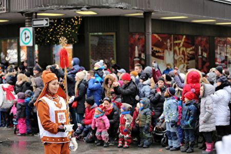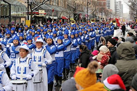 ![]() 图1:以华人为主体的法轮大法天国乐团,连续多年受邀参加蒙特利尔圣诞游行,今年天国乐团队伍有一百五十人,跟往年一样是游行中声势最浩大的队伍。 |