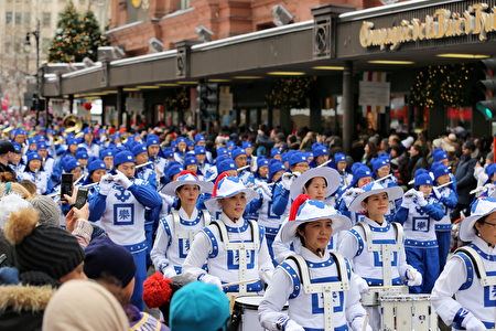 这项活动始于一九二五年,是寒冬里魁北克家庭最为期待的圣诞活动,当天有逾十万民众到现场观看。法轮大法天国乐团,连续多年受邀参加蒙特利尔圣诞游行,今年天国乐团队伍有一百五十人,跟往年一样,是游行中声势最浩大的队伍。