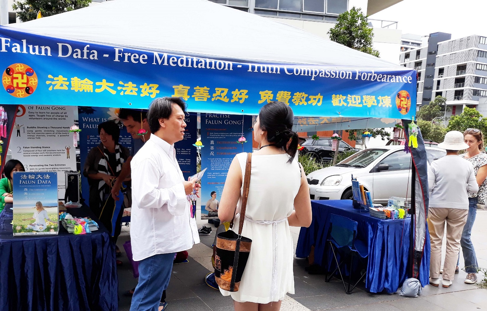 【明慧网二零一八年十一月二十六日】(明慧澳洲悉尼记者站报道)二零一八年十一月二十四日,位于澳洲悉尼滑铁卢市中心(Waterloo)的阿奇博尔德(Archibald)大道上,法轮功团体被邀请参加当地首次举办的居民乡村小集市(Divercity Village Markets)。