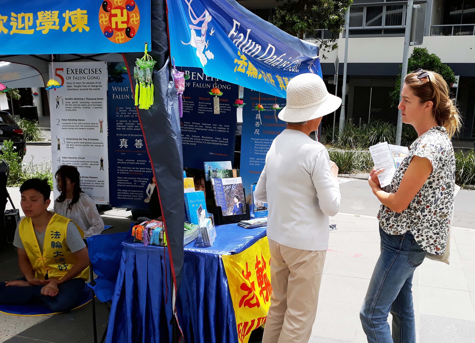 法轮功学员鲁先生(David Lu)给一位来自中国浙江省的女留学生介绍了法轮大法真相,她听后非常感兴趣,她问道:“在中国时怎么一点都不知道法轮功呢?”鲁先生说:“是啊,在国内海外的网站都被封锁了,这你是知道的吧。这些网站全世界人都能上的,可为什么中共要封锁呢?就是中共害怕中国人民知道真相。中共不仅仅是隐瞒了历史真相,而且完全篡改了历史真相,欺骗中国人民。澳洲是自由社会,你可以自己了解。”