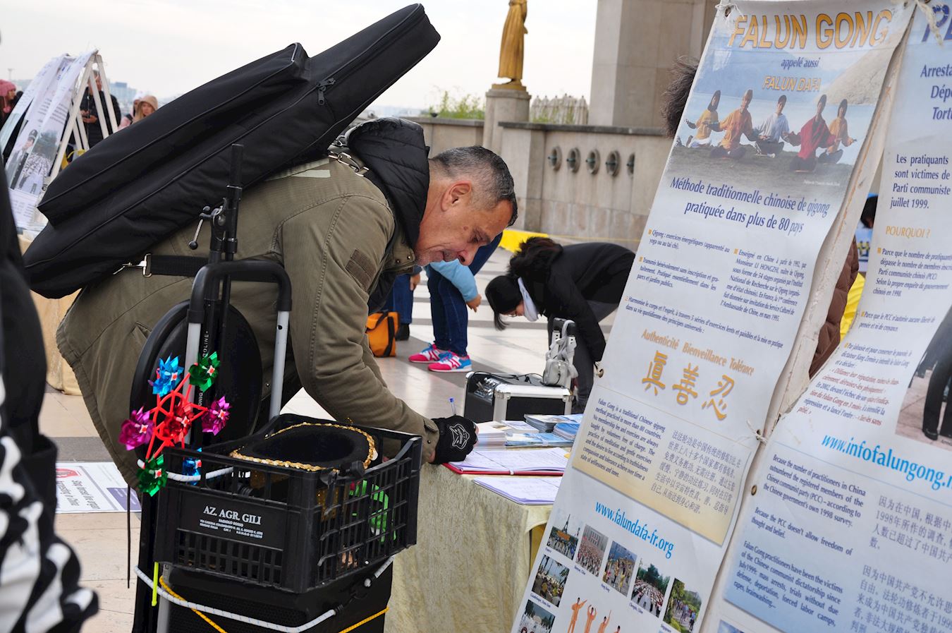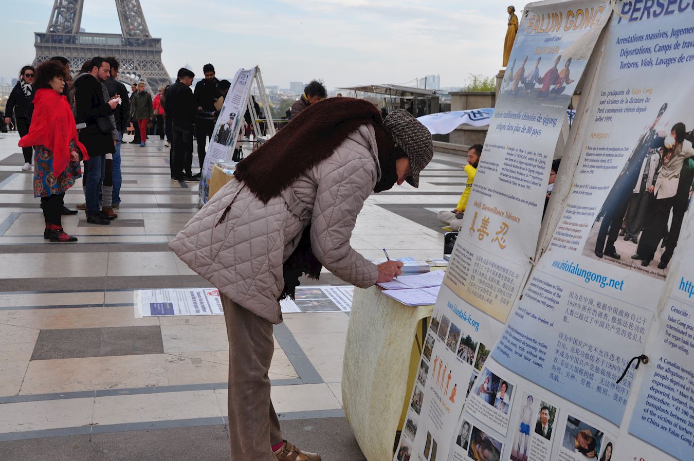 从比利时来法国度假的伯努瓦(Benoit)女士说:“我读过了展板上的报告,活摘并贩卖人体器官,这是对人类的侮辱,不可容忍,我签名支持他们的抗争。”