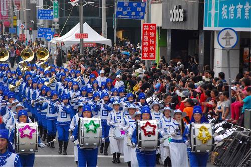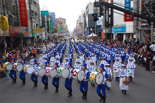 【明慧网二零一八年十二月十六日】二零一八年十二月一十五日,台湾法轮大法天国乐团踏上了台湾嘉义市街头,庞大的队伍演奏出雄壮的军乐,给市民带来欢欣鼓舞。天国乐团连续第八年应邀参加国际管乐节游行,与来自海内外,包括圣露西亚、香港、日本、加拿大及台湾等七个国家和地区的十三组乐团,在热闹的气氛中,共同为国际管乐节拉开序幕。