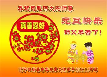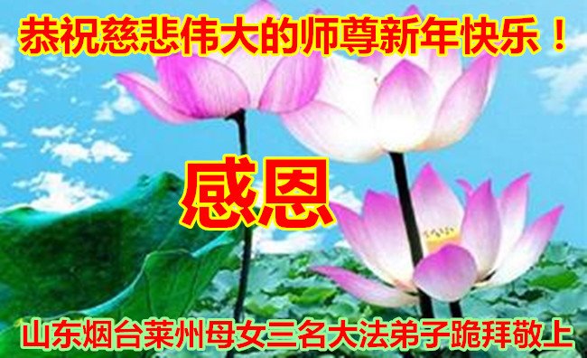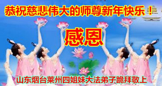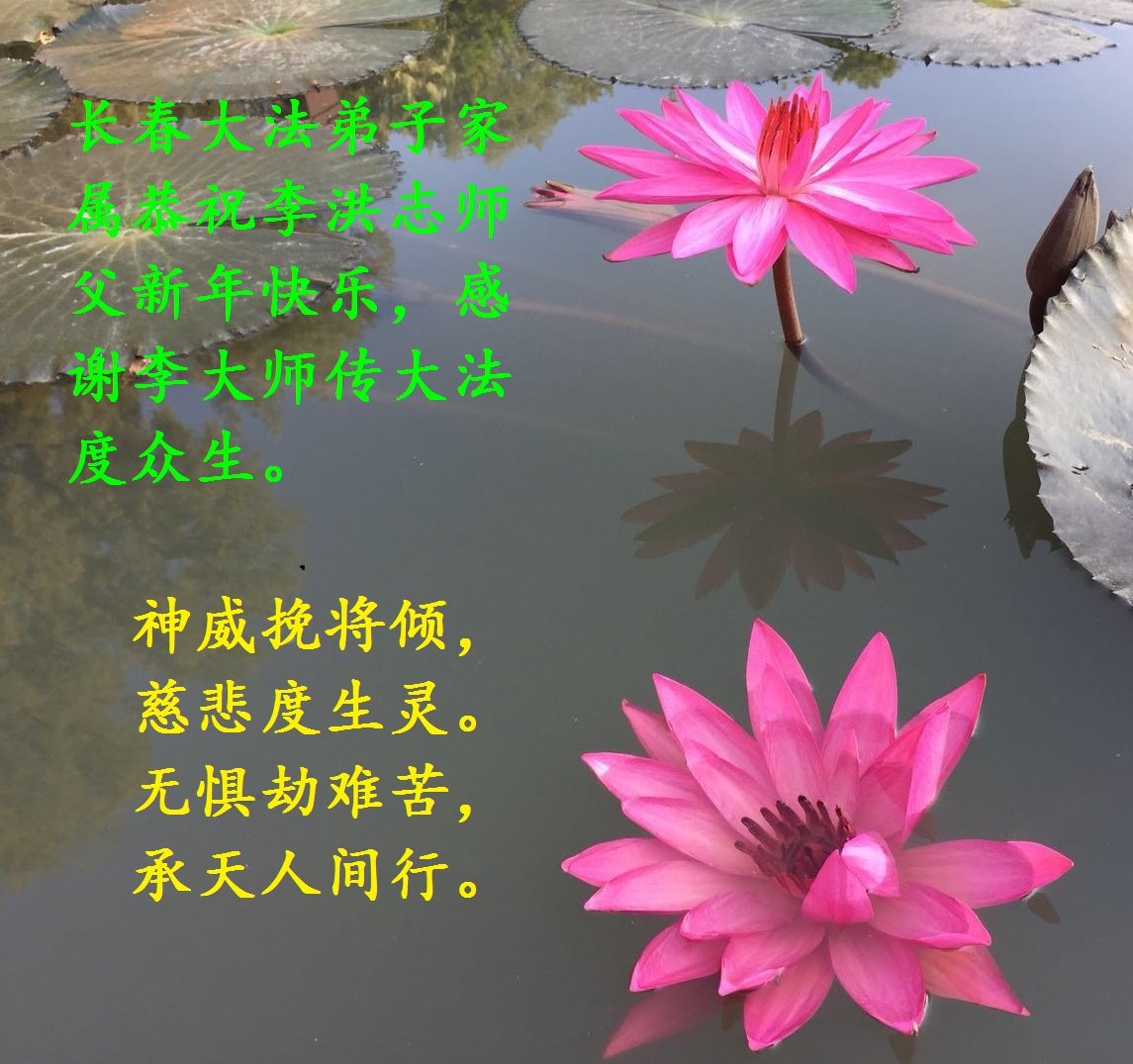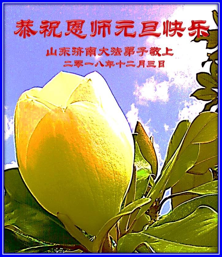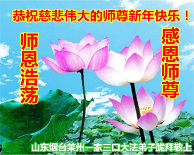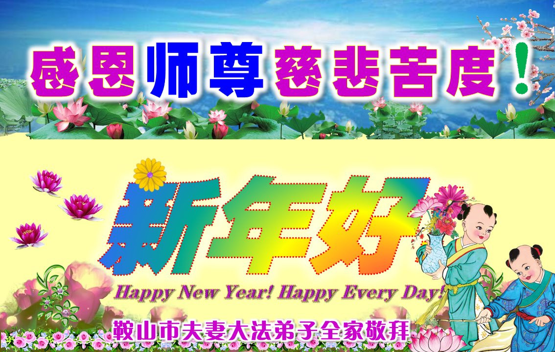 恭祝李大师元旦快乐!新年好!感恩李大师您的慈悲救度!把法轮大法的美好赐给我们!您的弟子告诉我们法轮大法真相,并让我们三退后诚念“法轮大法好!真善忍好!”我们就拥有了健康的身体以及给家人也带来了幸运,做生意和做事都兴旺顺利,告诉家人大法好他们也事事顺。