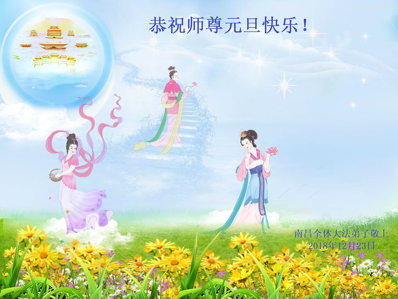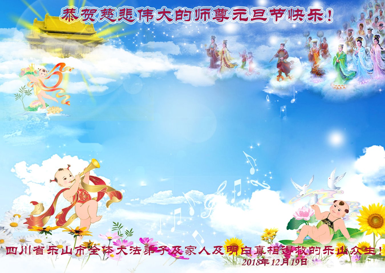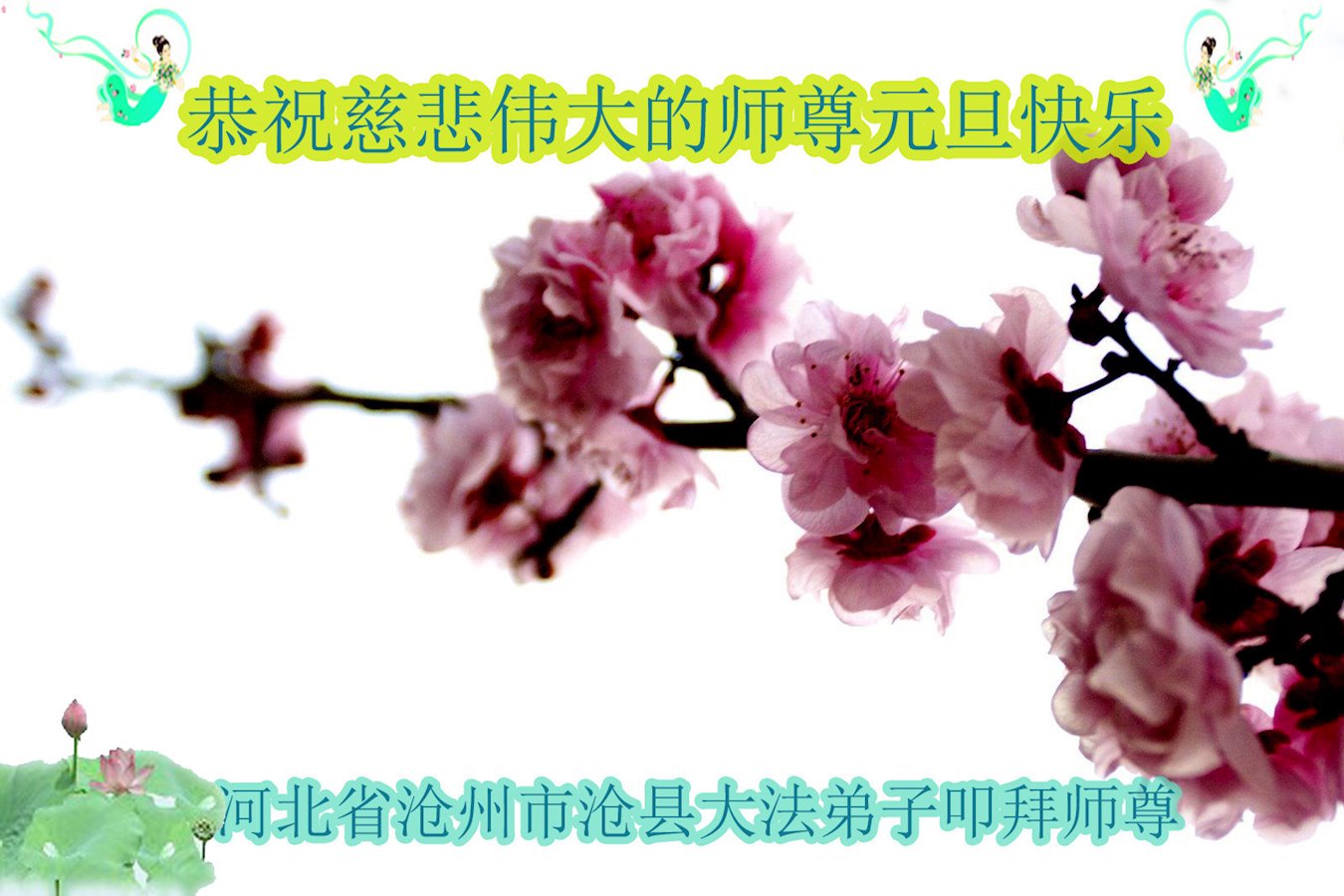 恭祝李大师元旦快乐!新年好!感恩李大师您的慈悲救度!把法轮大法的美好赐给我们!您的弟子告诉我们法轮大法真相,并让我们三退后诚念“法轮大法好!真善忍好!”我们就拥有了健康的身体以及给家人也带来了幸运,做生意和做事都兴旺顺利,告诉家人大法好他们也事事顺。