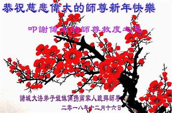 <英文版: http://en.minghui.org/html/articles/2018/12/31/174002.html>墨尔本法轮功学员恭祝师父新年好(图)
