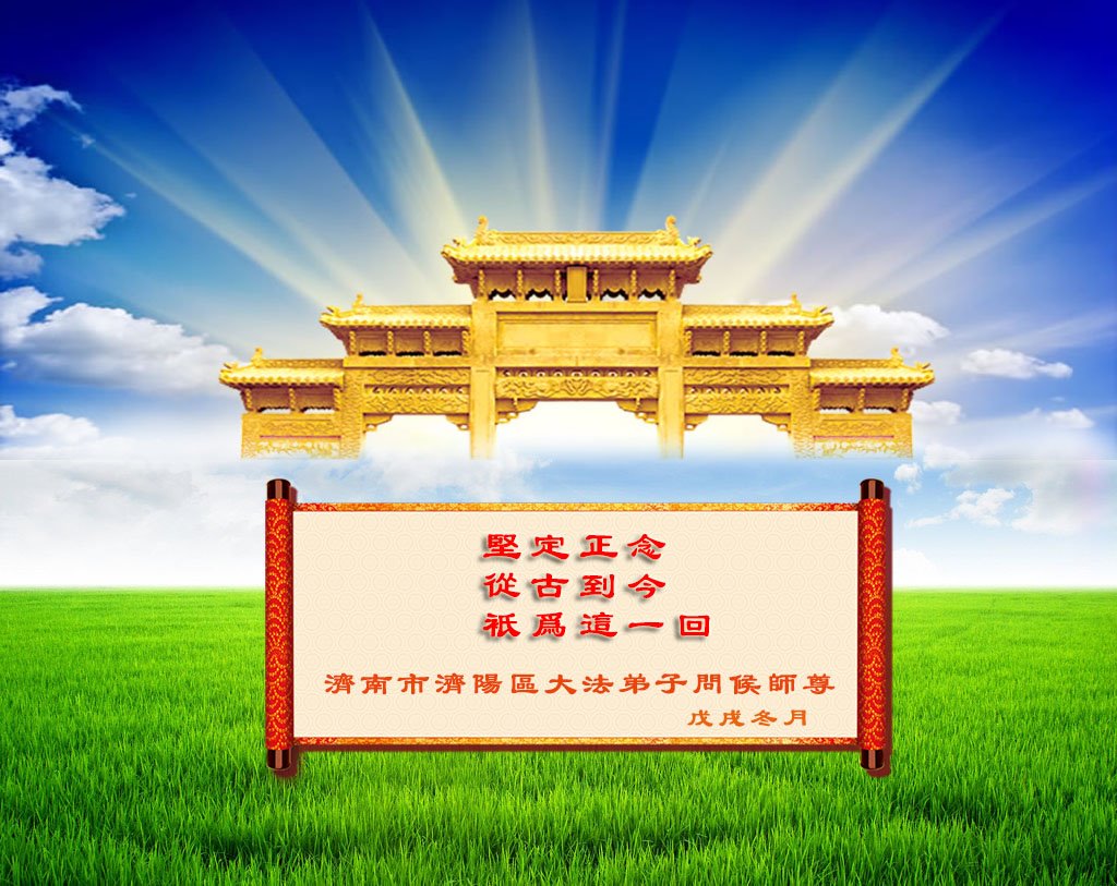 从那以后每到新年,我便开始使用真相对联。其中有一幅,我一连张贴了三年,上联:大法度世人人人归正道,下联:真相传万家家家颂佛恩,横批:法轮大法好。我知道,这就是法轮大法在世间在我家真实而又美好的展现,我相信,这是人和神同在的时刻!
