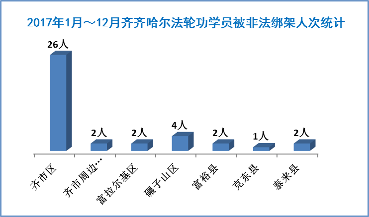 图2:齐齐哈尔市法轮功学员2017年被绑架迫害人次统计