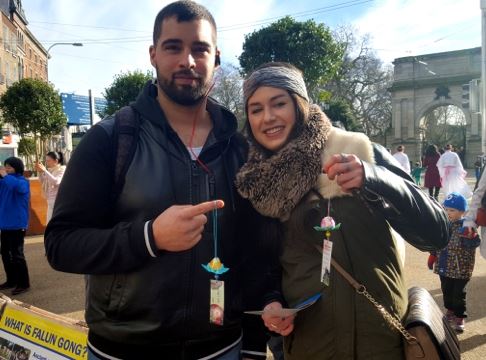 '来自剑桥的阿美雅和男友支持法轮功反迫害'