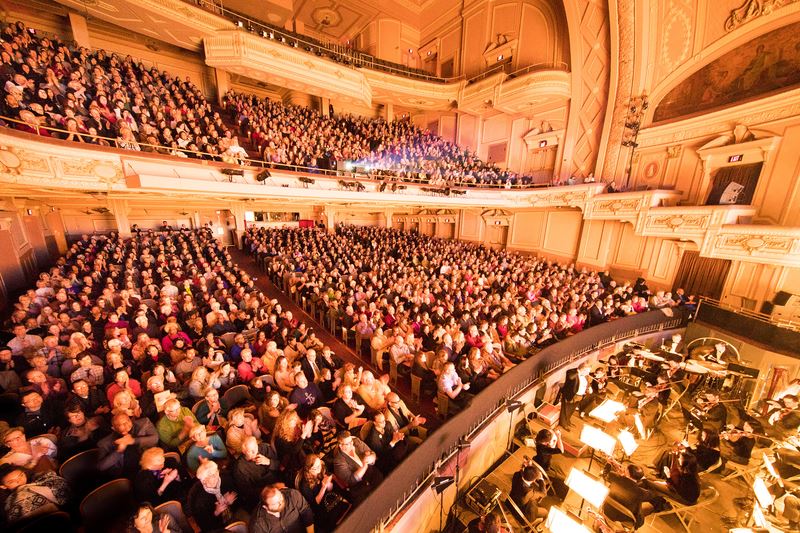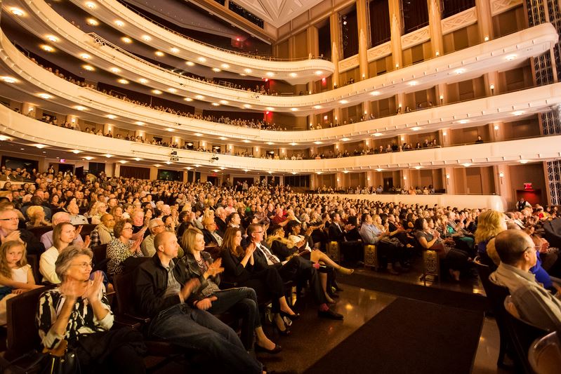 ![]() 图3:二月二十三日至三月十一日,神韵世界艺术团在美国费城玛丽安剧院(Merriam Theater)上演了包括原订的十七场演出和三个加场演出,共二十场演出,演出票全部提前售罄,场场一票难求。图为三月十日的演出大爆满盛况。 |