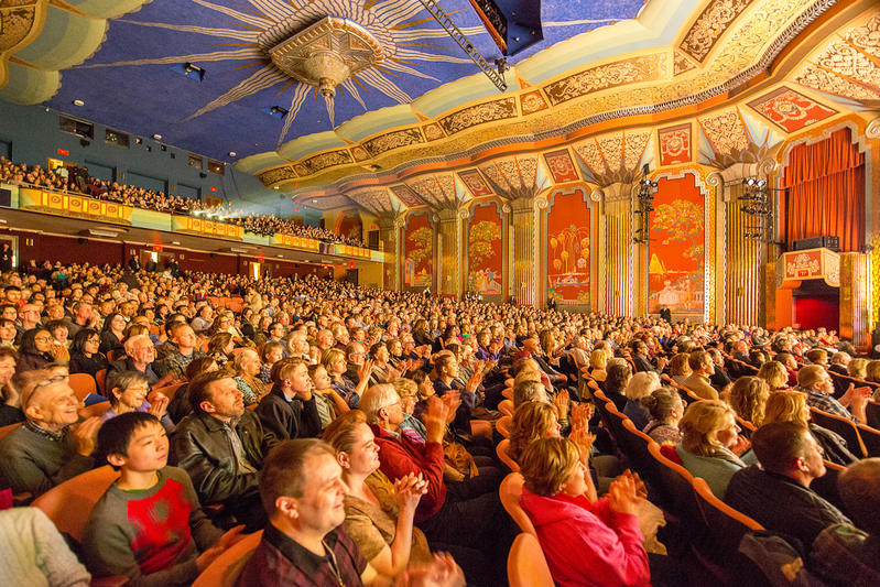 ![]() 图1:神韵巡回艺术团二零一七年四月五日至八日在芝加哥西郊奥罗拉市(Aurora)派拉蒙剧院(Paramount Theater)一连上演了七场演出,包括其中一场加场,连连爆满、一票难求。图为六日晚场演出大爆满盛况。 |