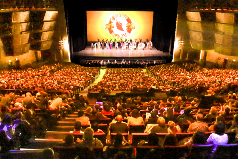 ![]() 图2:二零一八年四月三日至八日,神韵世界艺术团在加州橙县柯斯塔梅莎市的橙县艺术中心剧院上演九场演出,其中一场是加场,场场一票难求。图为四月八日晚,最后一场演出座无虚席的盛况。 |
