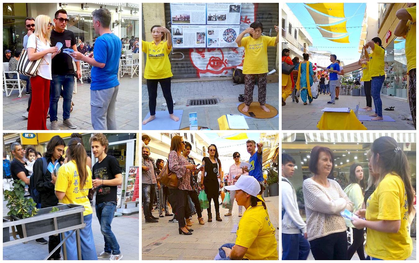 '塞浦路斯法轮功学员们在首都步行街上传播法轮功真相'