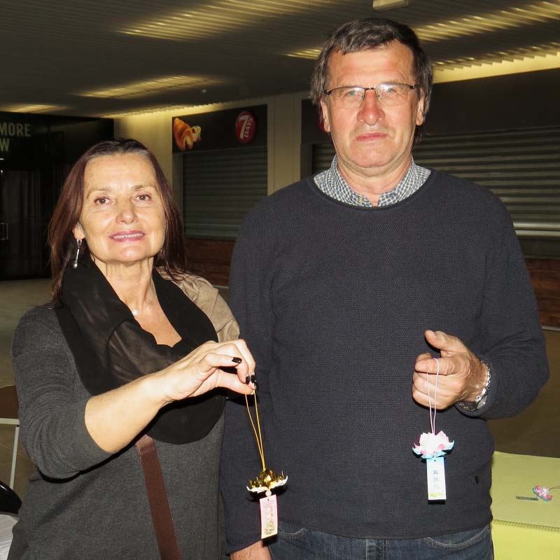 一些人把他们的电话号码留下来,希望下次有活动时通知他们。许多孩子和家长被法轮功学员展位上的莲花所吸引,他们兴致勃勃的学作纸莲花,最后都获得了优美的莲花。