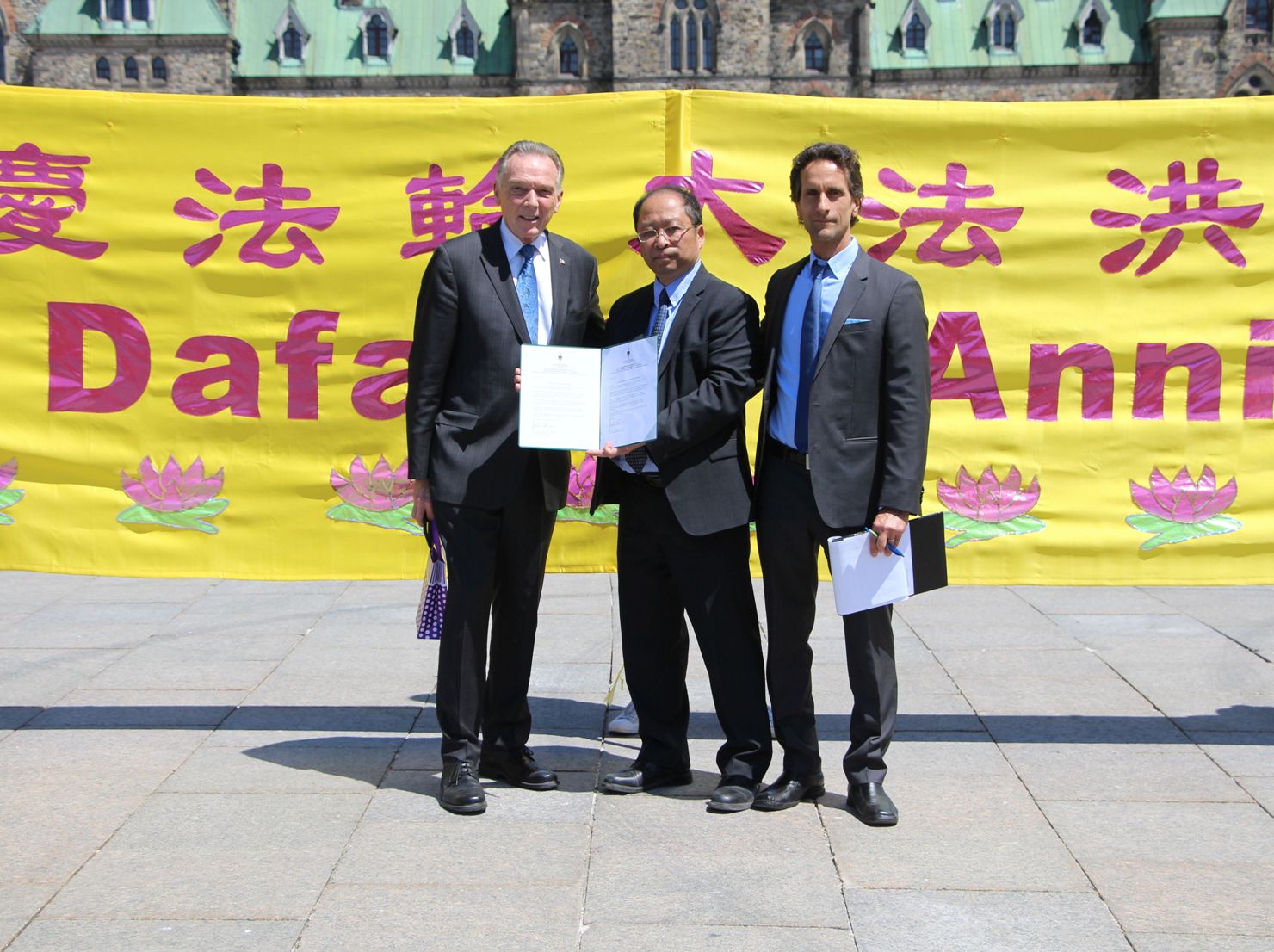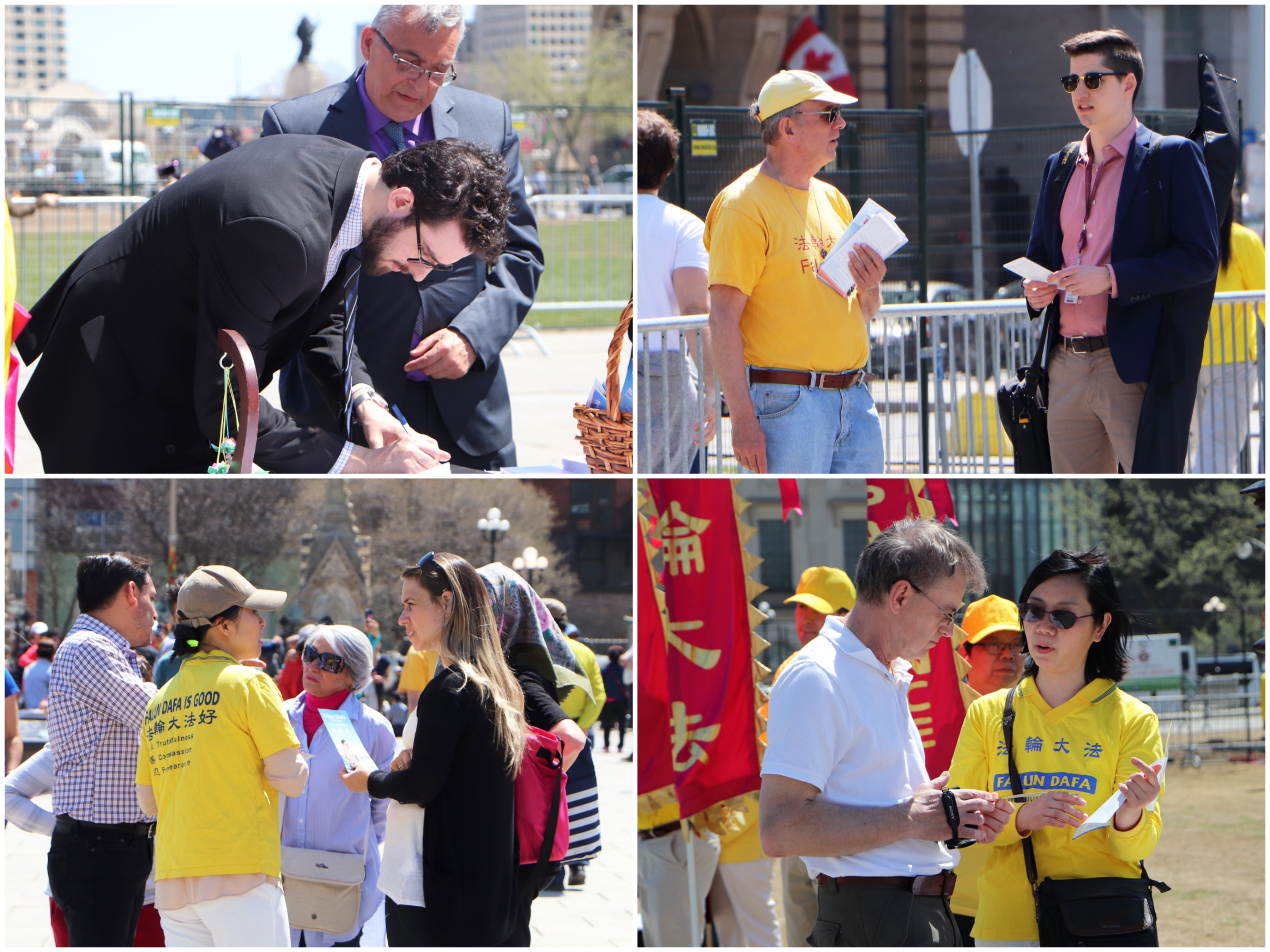 加拿大多位议员和法轮功支持者到现场发言,表示对法轮功学员十九年来反对中共迫害的支持,并感谢法轮功学员这个平和团体及其理念对加拿大社会做出的贡献。一天的活动吸引了很多民众到现场了解法轮功真相,并签名支持反迫害。