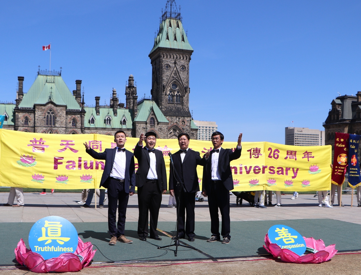 ![]() 图1~7:五月九日来自加拿大东部渥太华、多伦多、蒙特利尔等城市的部分法轮功学员在加拿大国会山前庆祝法轮大法日。 |