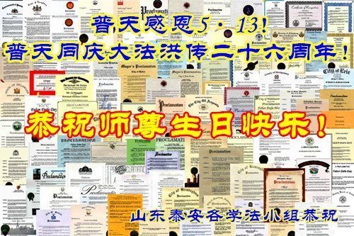 • 山东大法弟子恭贺世界法轮大法日暨师尊华诞(18条)