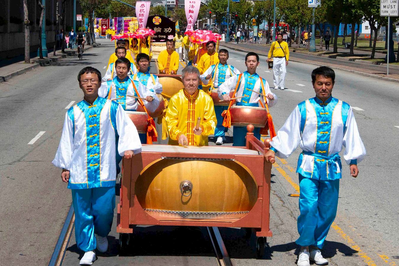 在游行队伍中打腰鼓的法轮功学员唐丽娟说,今天是师父的生日,所以我来这里参加活动,表达对师父的感恩。“法轮大法是佛法修炼,给人类带来美好,使人心向善,身体健康,道德回升,返本归真,是万年不遇的正法。”