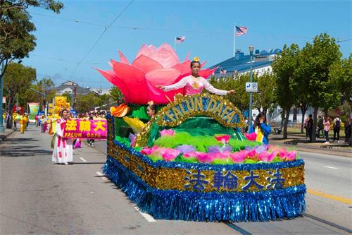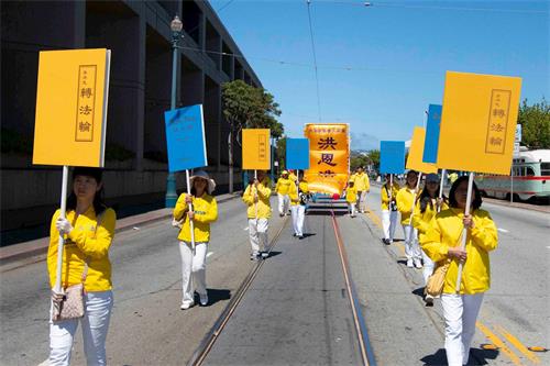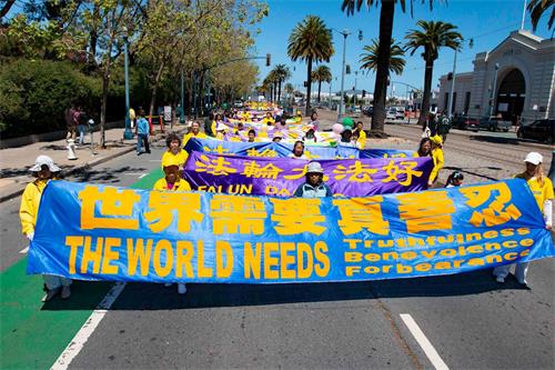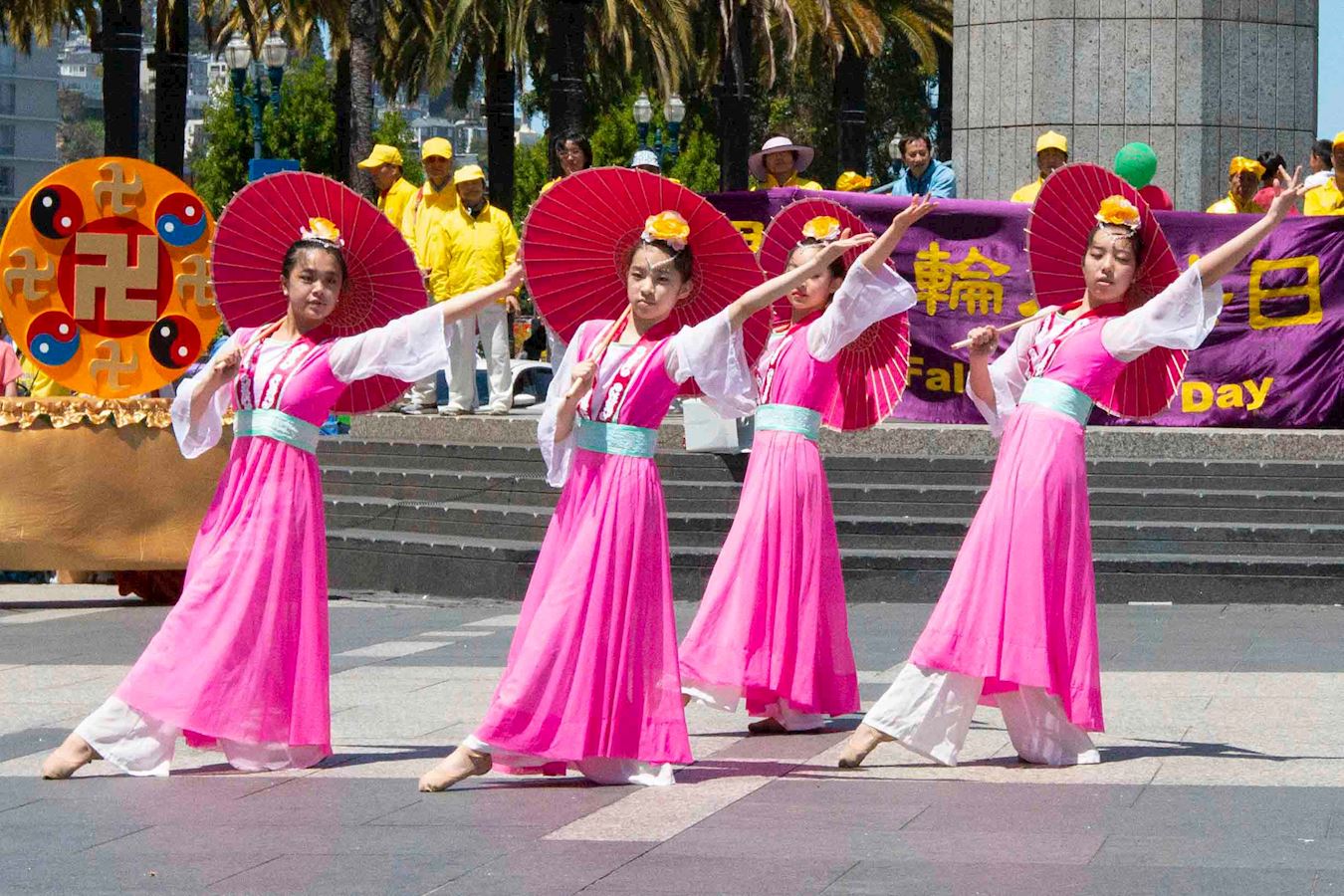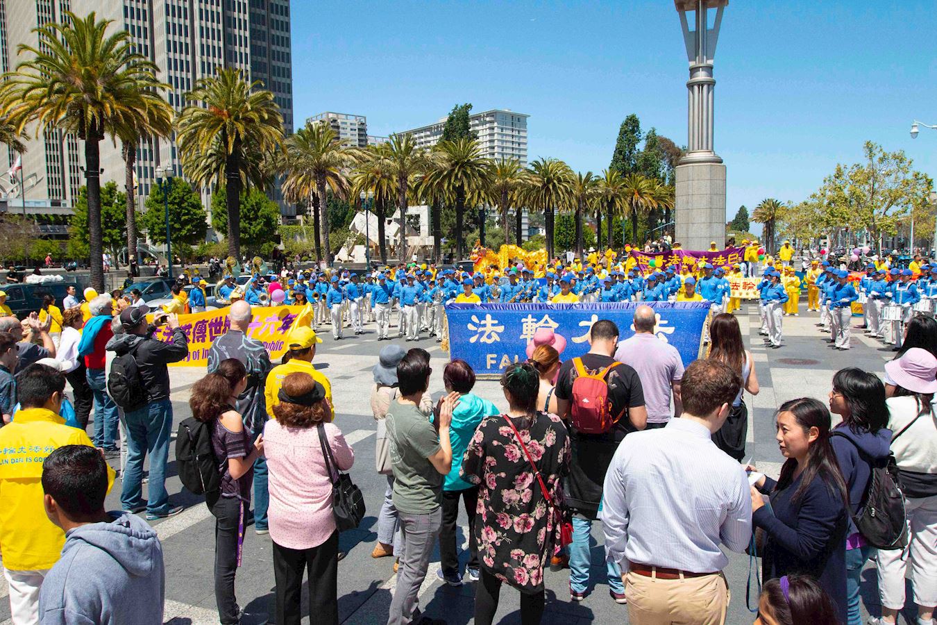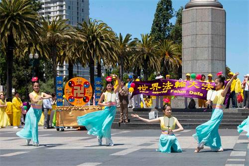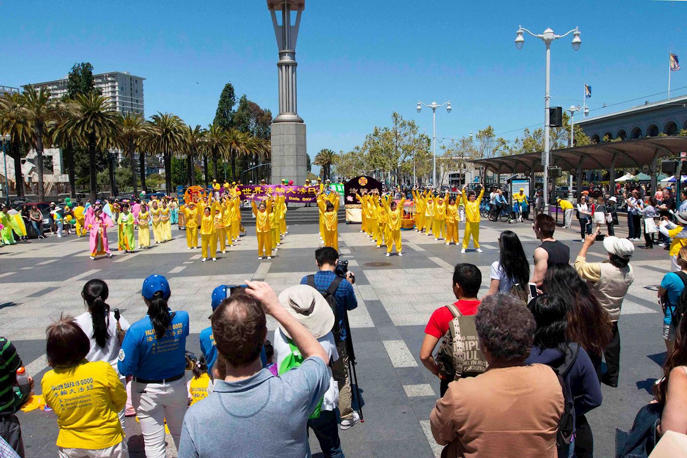 游行结束后,法轮功学员在渡轮大厦(Ferry Building)进行了功法展示,并表演节目,庆祝法轮大法日。许多游客被吸引,还有的人跟着学炼法轮功的动功,并了解真相。