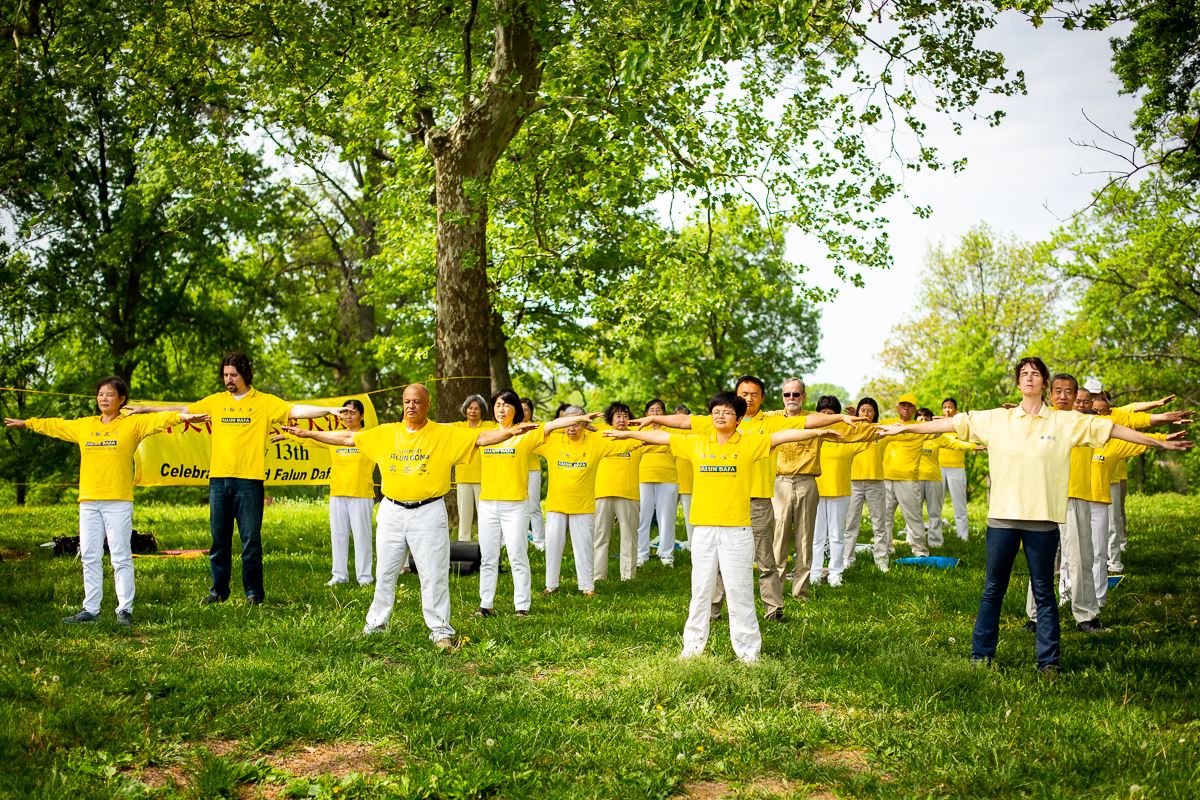 【明慧网二零一八年五月十六日】二零一八年五月十三日,美国密苏里州圣路易的法轮功学员在当地著名景点森林公园集体炼功,庆祝法轮大法洪传世界二十六周年,暨法轮大法创始人李洪志先生六十七华诞。