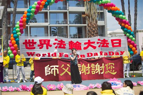 '图1:洛杉矶部份法轮功学员在圣莫妮卡海滩庆祝5.13“世界法轮大法日”暨法轮大法创始人李洪志先生华诞。'