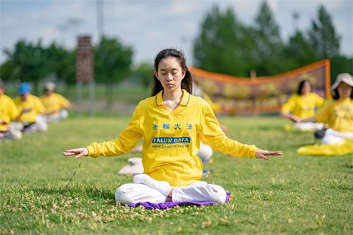 来参加庆祝世界法轮大法日活动的学员来自大达拉斯地区的不同城市,从小孩到九十岁的老人,但这次在炼功队中最大的亮点是那些年轻的炼功人。他们中有在幼小年纪就随父母亲开始修炼的“青年老大法弟子”,有来美求学后才走入修炼的国际学生,也有才开始接触大法几个月的美国高中生。