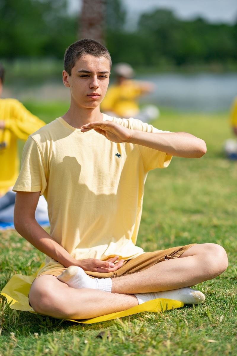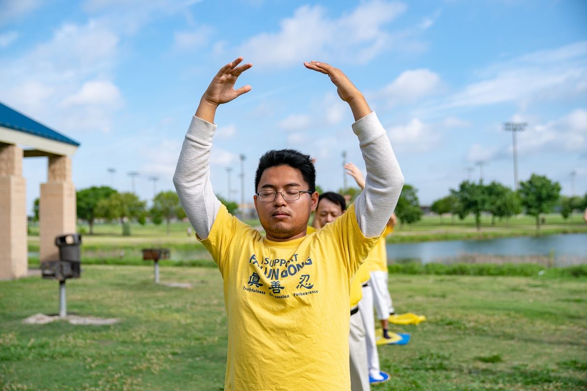 Ian是北德州大学(North Texas University)政府和金融系的大学生,因所学专业的关系,他关注中共对法轮功的。在两周前一次社区活动中与法轮功学员相遇,得知了庆祝世界法轮大法日的活动,他欣然前来想亲身体验一下功法。活动结束时,他表示虽然学校离布兰诺不是很近,但他会尽量参加周末的集体炼功。