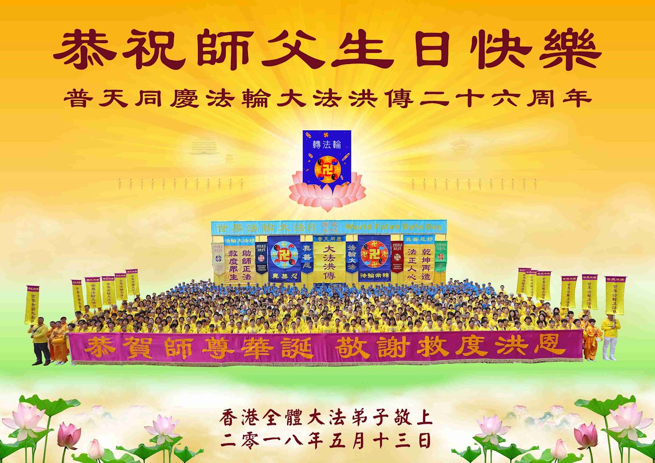 【明慧网二零一八年五月十六日】(明慧记者唐恩综合报道)二零一八年五月十三日是第十九届“世界法轮大法日”暨法轮大法洪传世界26周年纪念日,也是法轮功创始人李洪志先生67岁华诞。香港法轮功学员在港岛区举行盛大集会游行,向师尊表达感恩,向市民游客展现法轮大法的祥和美好,传扬“真、善、忍”普世价值。社会领袖和政要纷纷致贺,赞佩法轮功福国利民的卓越贡献。