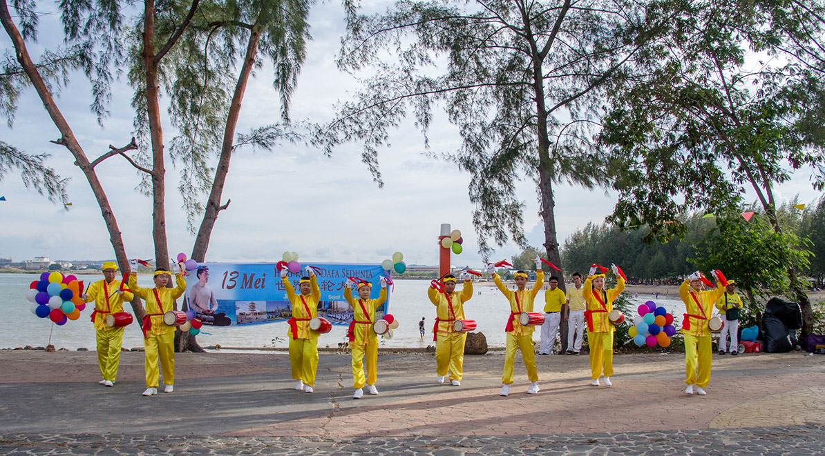 图1:巴淡岛法轮功学员在奥卡里纳(Ocarina)游乐场庆祝世界法轮大法日。