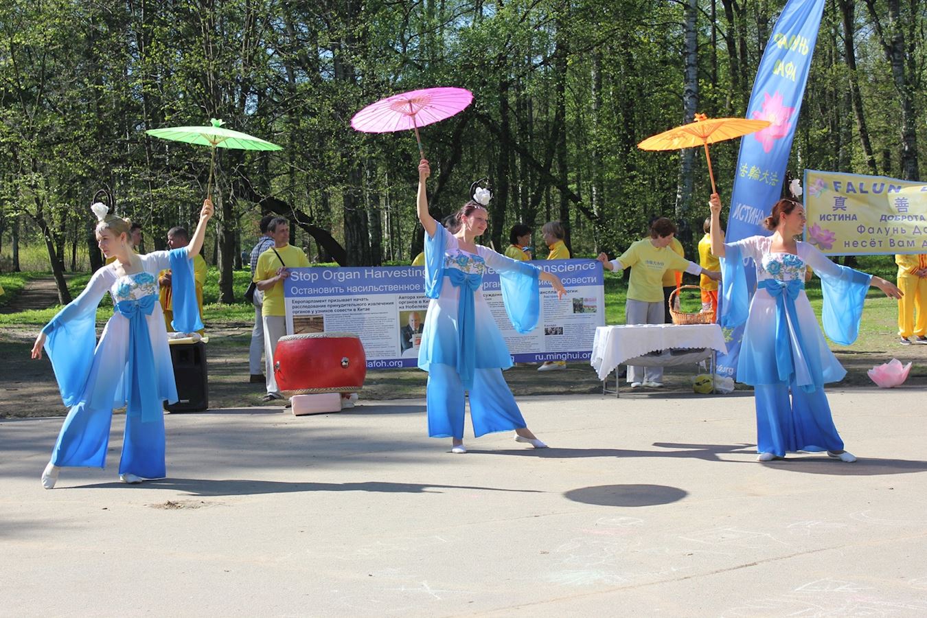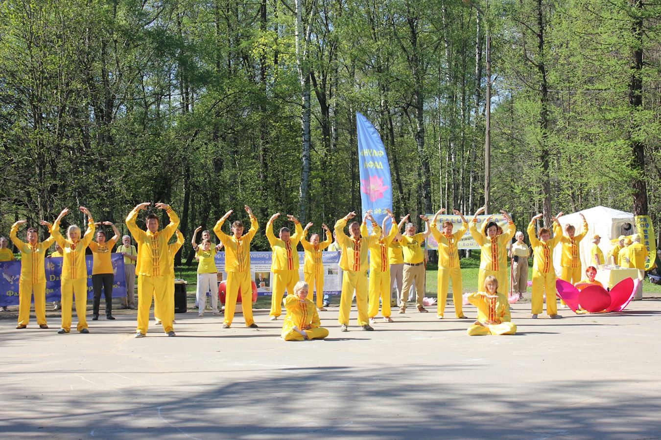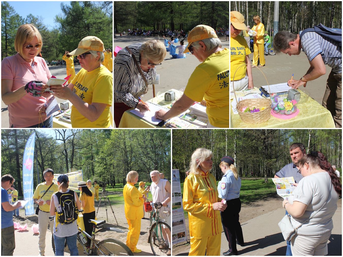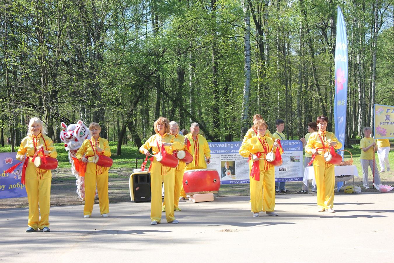 托木斯克市(Tomsk)的法轮功学员在休闲公园内和民众共同庆祝“五一三法轮大法日”。表演舞狮和腰鼓,并且散发资料向当地民众讲真相。