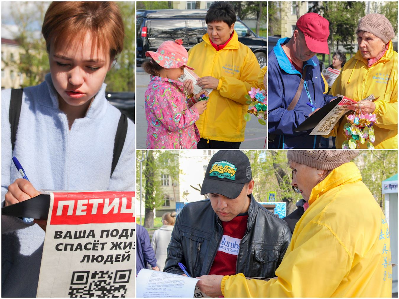 乌拉尔地区的车里雅宾斯克市(Chelyabinsk)和马格尼托哥尔斯克市(Magnitogorsk)的法轮功学员也走上街头集体炼功,发放资料,向当地民众讲述法轮功真相。