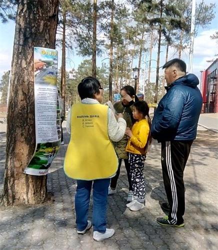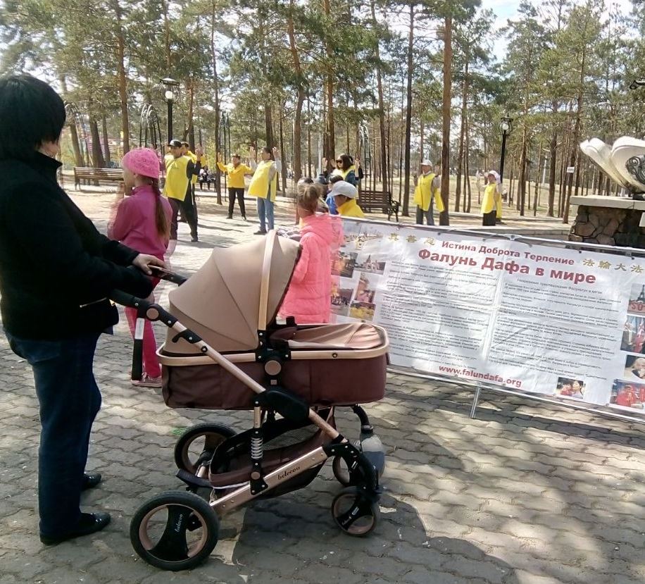 在乌兰乌德市(Ulan-Ude),法轮大法日的庆祝活动在朱比利公园(Jubilee Park)举行。 集体炼功、发资料、征签反迫害,同时还进行了舞龙表演。