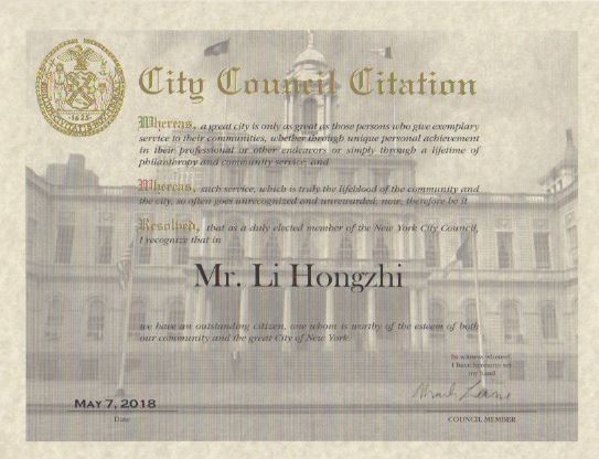 纽约法轮大法佛法研究协会为公园、图书馆、高级中心、健康俱乐部和其他的公共地点带去了免费课程。作为一个组织,你有一个令人印象深刻的公共服务精神,你们对真善忍的追求一定会帮助围绕在你周围的人提升。为了你们对我们城市人民的服务,我感谢你们。