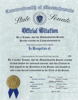 麻州参议院献上最美好的祝愿,祝不断取得成功。此褒奖状由参议院主席签署并由参议院秘书作证明和传递。