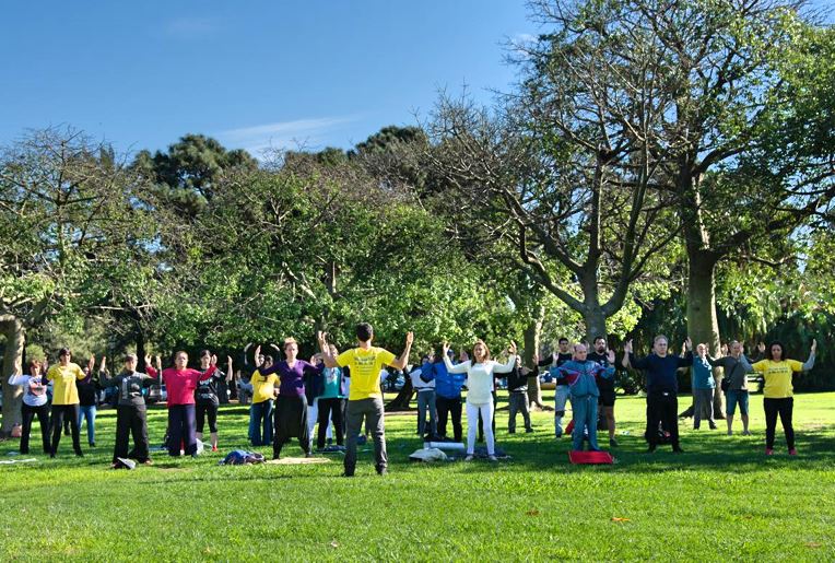 ![]() 图2:阿根廷的法轮功学员分别在巴勒莫公园集体炼功,展示大法的美好。 |