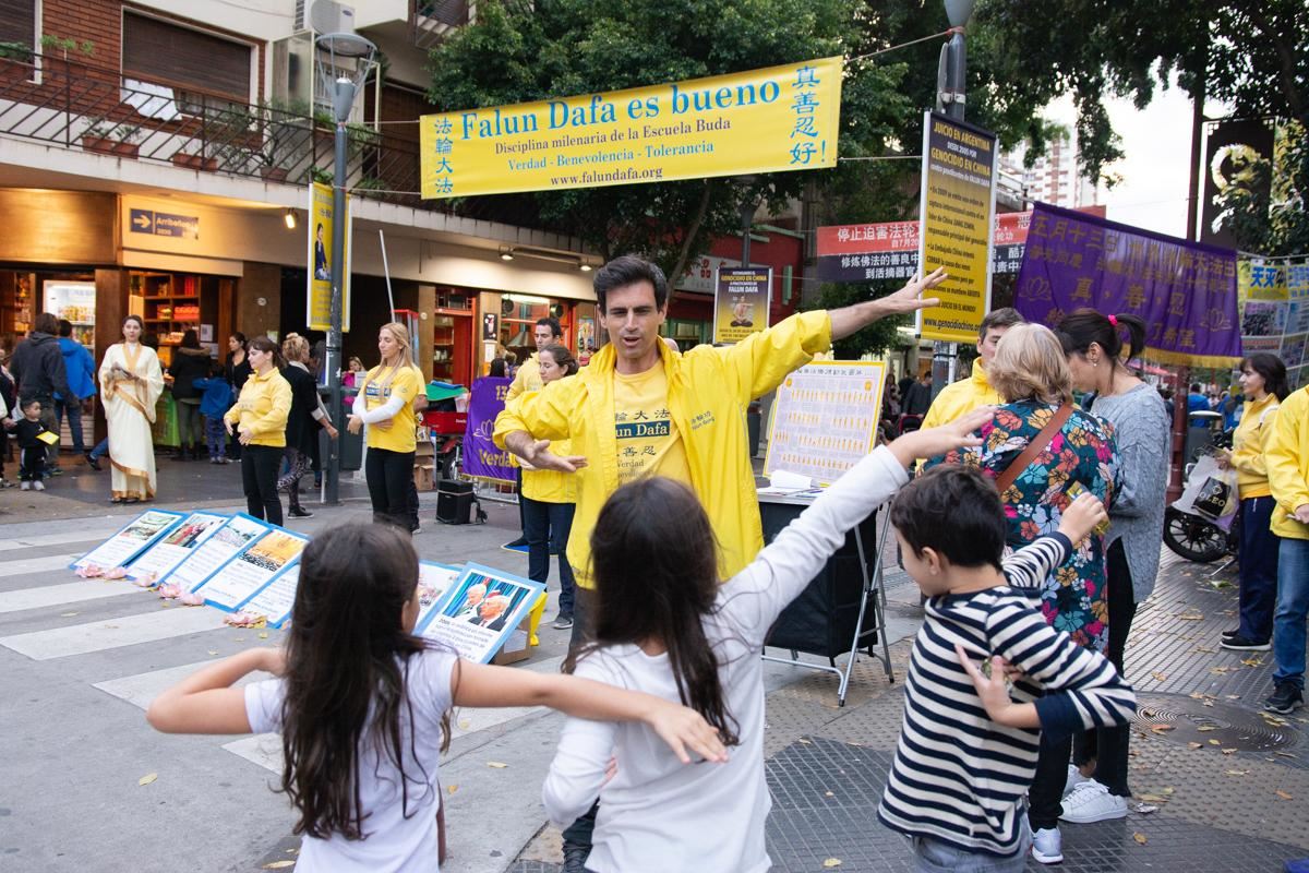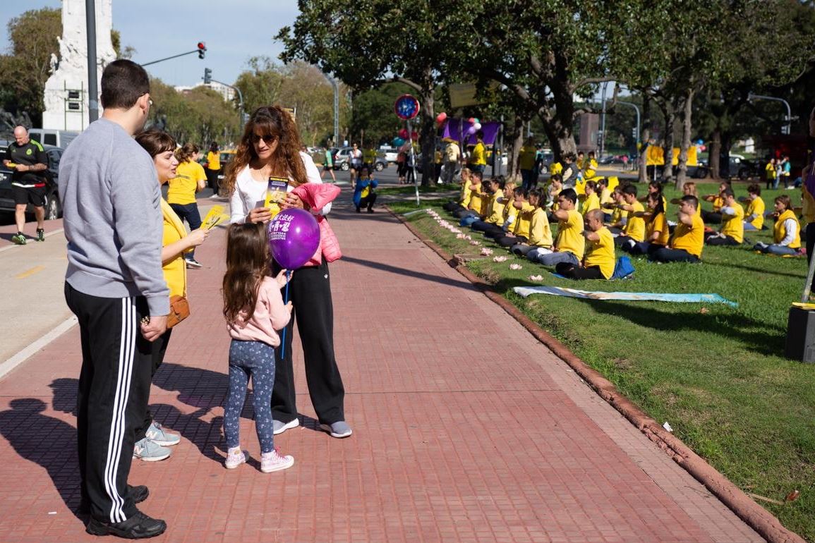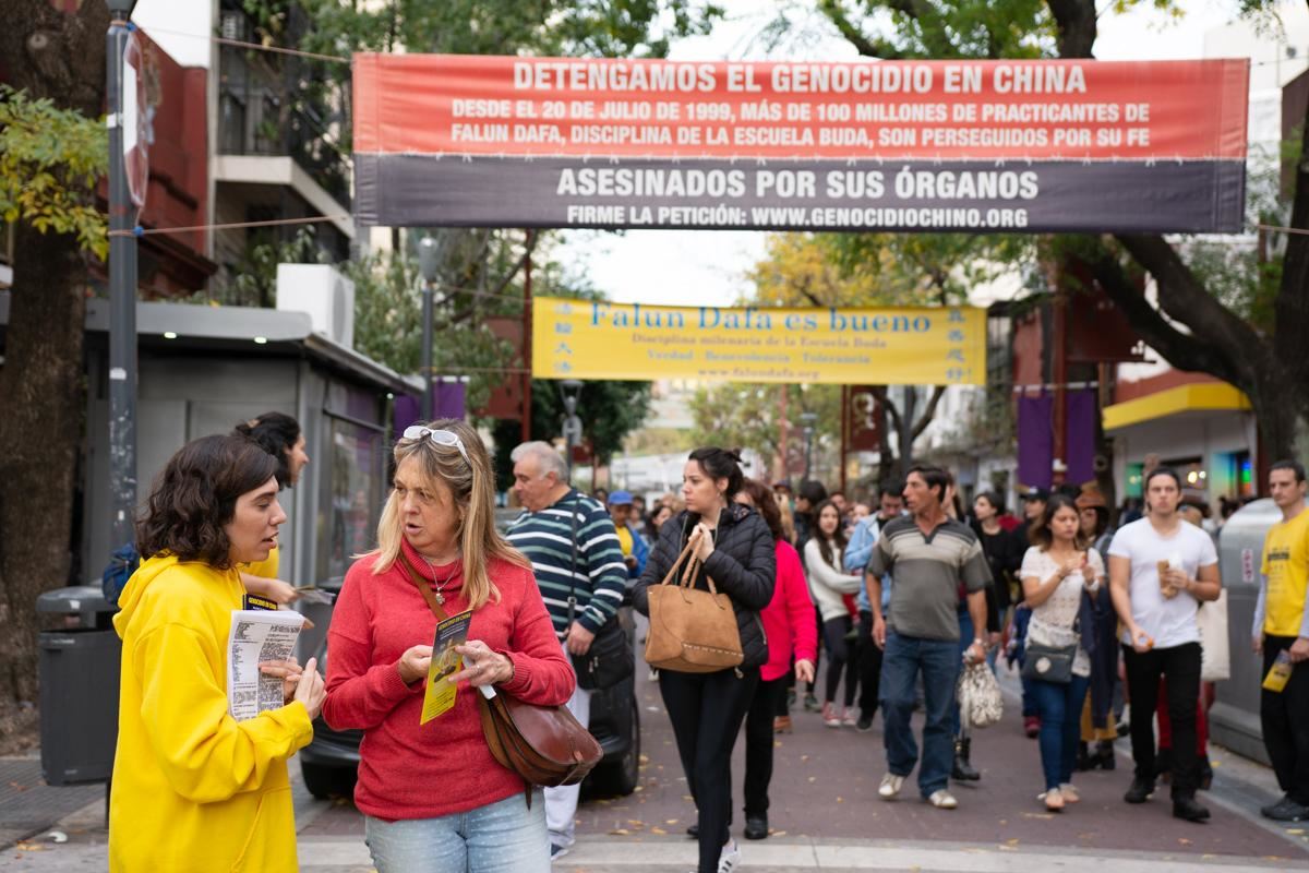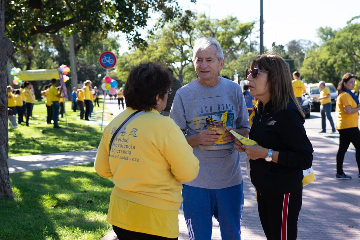 当天,阿根廷的法轮功学员分别在巴勒莫公园(Bosques de Palermo)和唐人街举办讲真相活动,展示法轮大法的美好,同时让人们了解中国在过去十九年里对法轮功学员的残酷迫害。