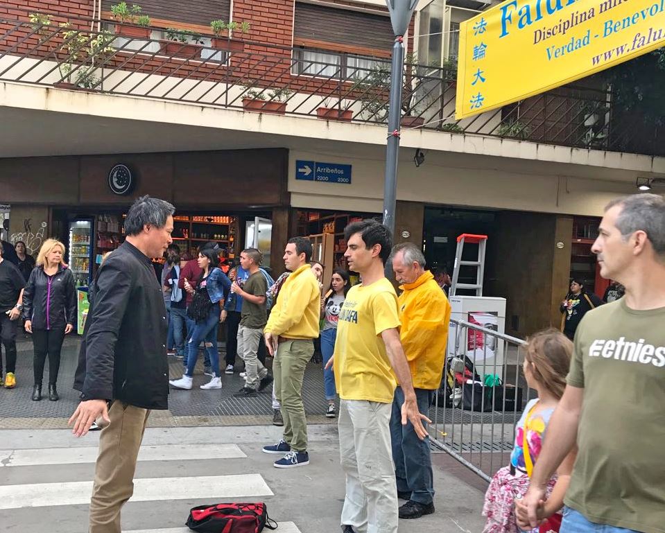 当天下午,学员来到了布宜诺斯艾利斯的华人街,继续传播法轮大法的真相。不少民众得知当日是“法轮大法日”时,很感兴趣,都想了解更多关于大法的真相。