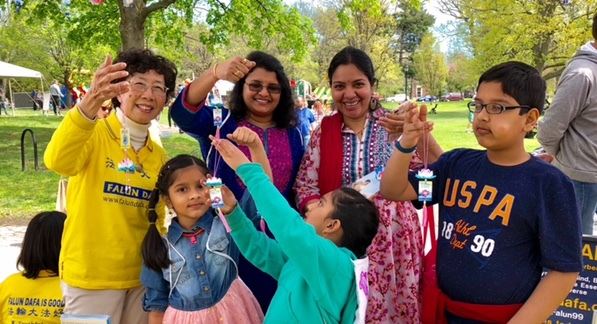 图4:拿到法轮功传单和精致小莲花的人们非常高兴