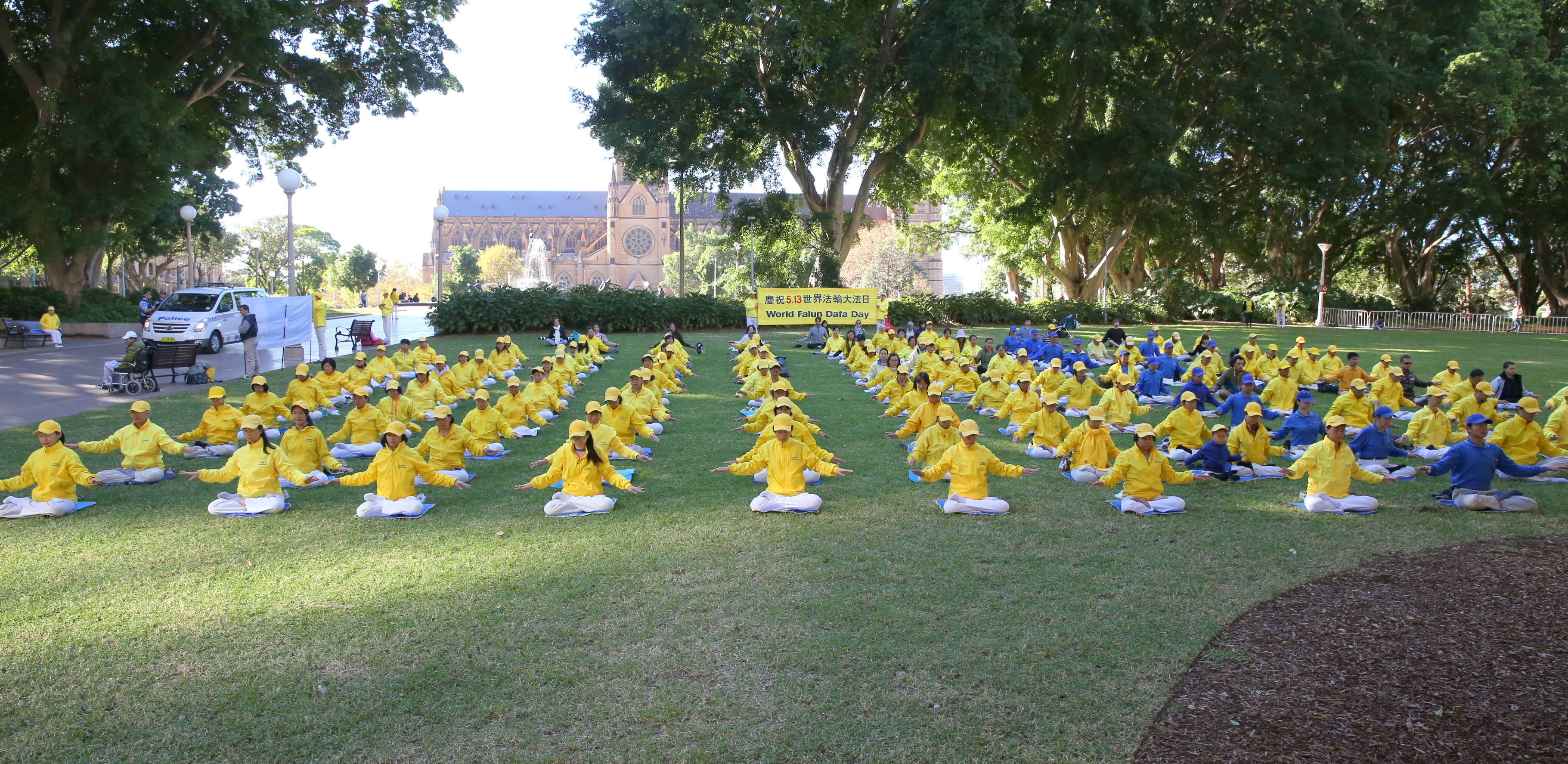 图2:法轮功学员在悉尼市中心的海德公园(Hyde Park)展示法轮功五套炼法。