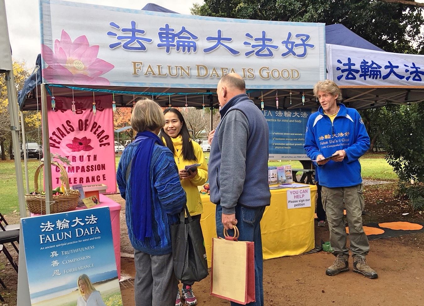 其中,一位和友人带着各自的孩子逛周六集市的澳洲西人女子,激动地告诉记者,法轮大法就是她真正需要的、正在寻找的功法,并非常感谢法轮功学员们从墨尔本来此,把法轮功的信息带给他们。还有居民表示要在身边的亲友中介绍,希望能邀请学员到当地举办免费的教功班。